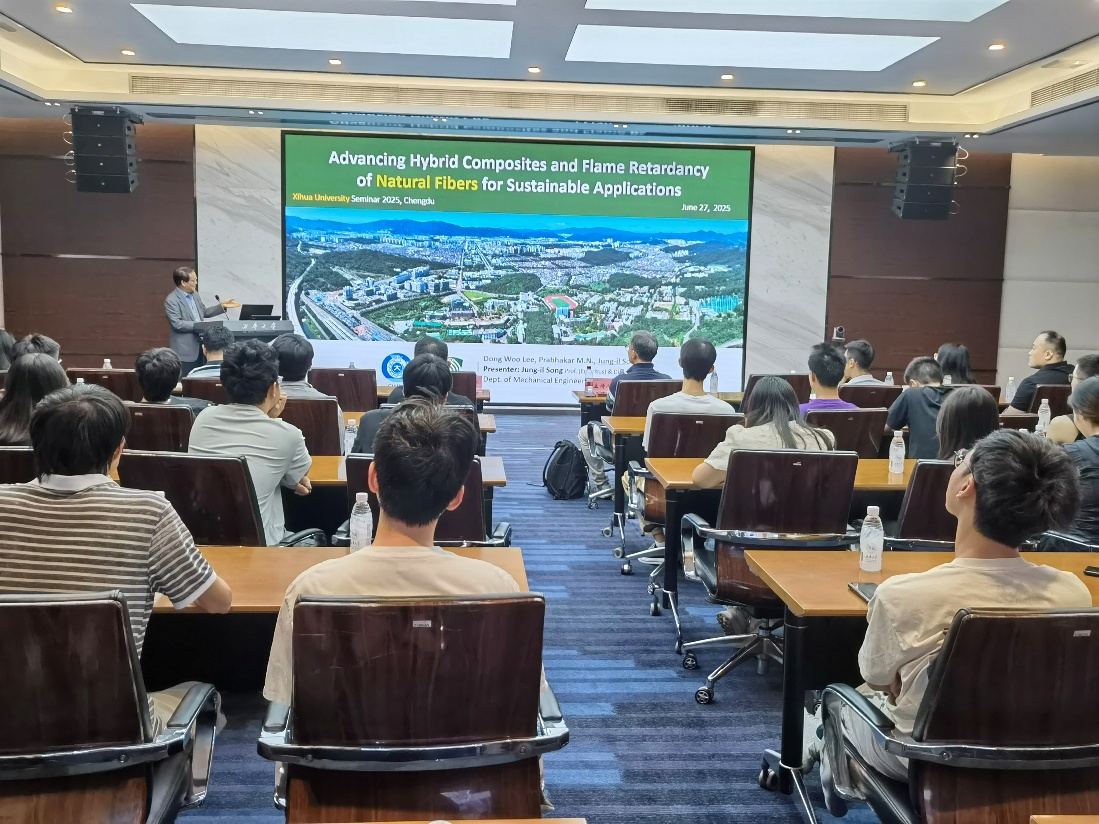 6月27日上午,机械工程学院邀请韩国昌原国立大学Jung-il Song教授来校访问,并在行政楼101会议室做了题为“Sustainable Natural Fibre Composites with Enhanced Mechanical and Fire-Resistant Properties”的学术报告。学院院长张均富教授对Jung-il Song教授的来访致以热烈的欢迎,报告会由胡宁教授主持,学院部分教师及研究生参加了报告会。Jung-il Song教授详细介绍了天然纤维增强聚合物合材料(NFRPCs)的各类特性及应用前景。报告得到了在场师生的热烈响应,纷纷踊跃提问,就感兴趣的问题与Jung-il Song教授进行了交流。