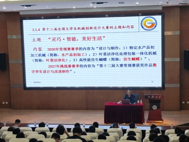 9月11日下午4:00,机械工程学院邀请西安交通大学王晶教授在图书馆报告2厅做了题为“第十二届全国大学生机械创新设计大赛主题和内容深度解析”的报告。报告会由学院党委副书记李强主持,学院师生代表190余名参加了报告会。